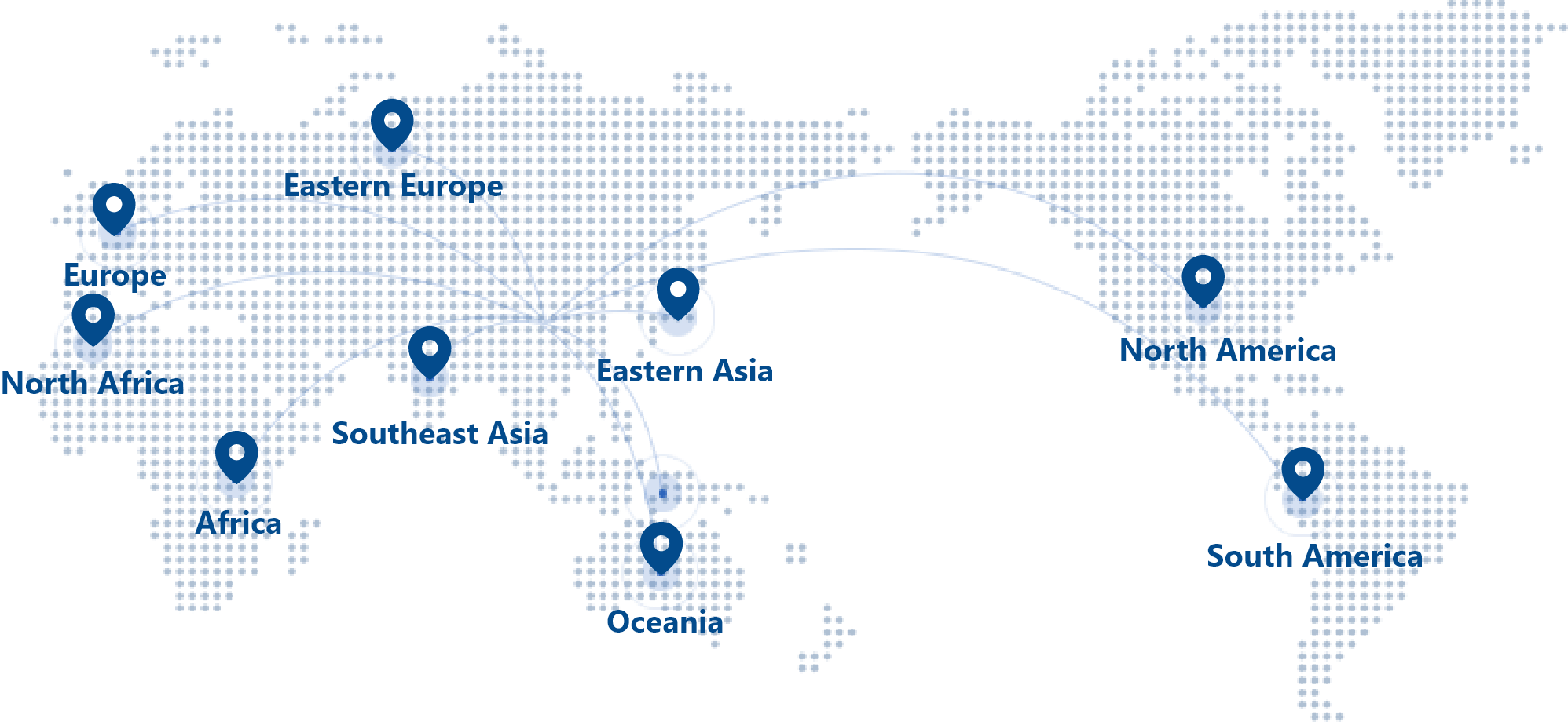 中国、北美、南美、东欧、东南亚、大洋洲、东亚